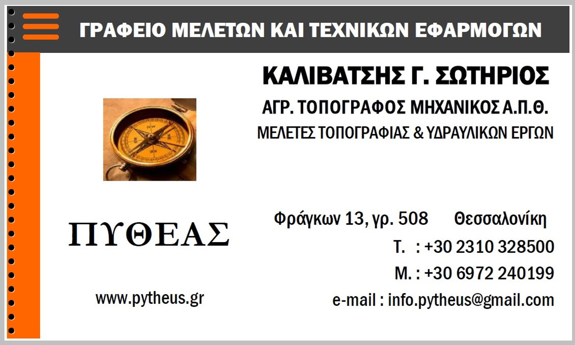 © 1994-2022. ΓΡΑΦΕΙΟ ΜΕΛΕΤΩΝ ΚΑΙ ΤΕΧΝΙΚΩΝ ΕΦΑΡΜΟΓΩΝ "ΠΥΘΕAΣ"